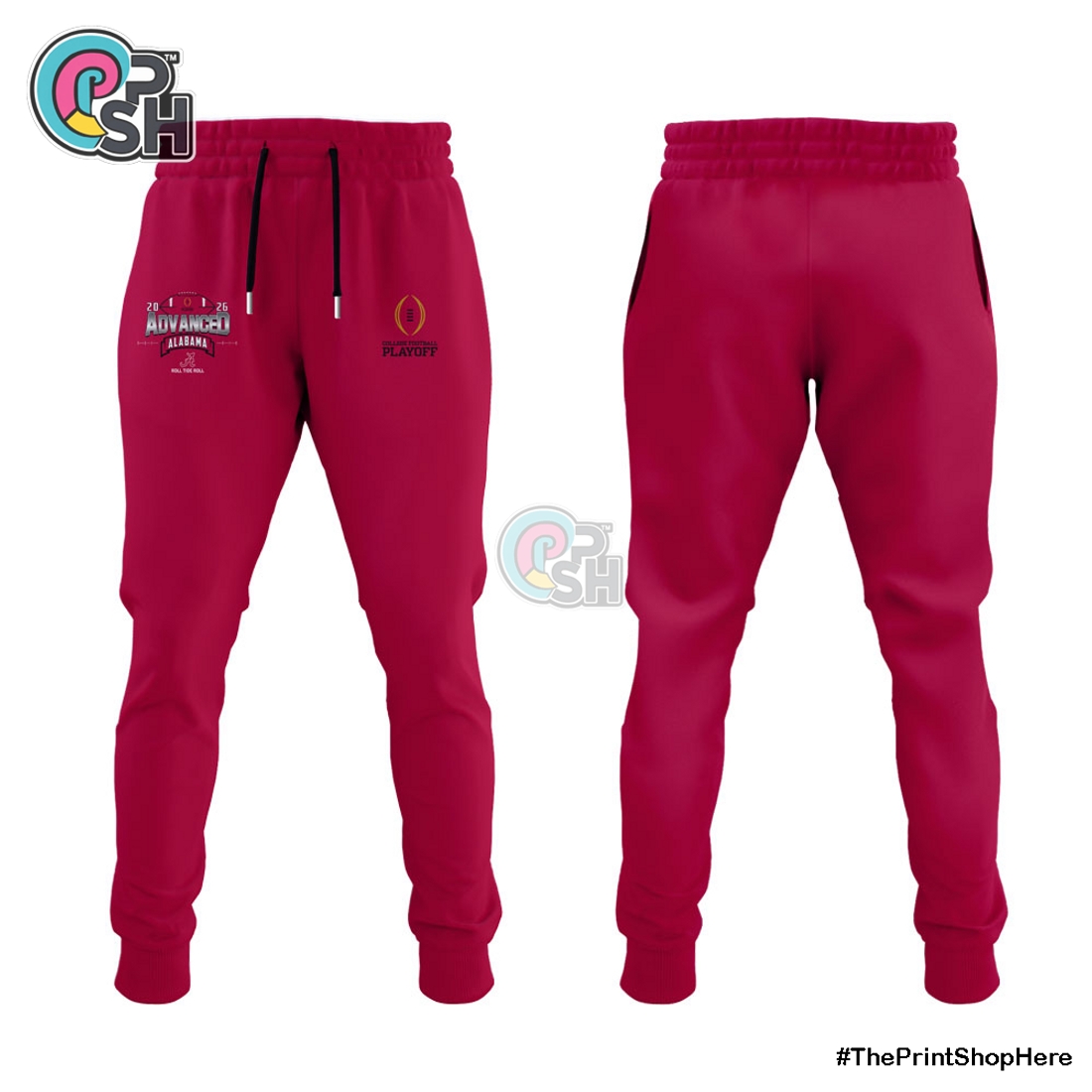 Complementing the hoodie, the matching pants are designed with the same commitment to comfort and quality. They feature an elastic waistband with an adjustable drawstring, allowing for a personalized and secure fit that adapts to various body types and activity levels. Deep side pockets provide convenient storage for phones, keys, or wallets, enhancing the practicality of the set. The pants often incorporate a jogger-style design with ribbed ankle cuffs, offering a modern aesthetic that not only looks sharp but also helps keep warmth in and provides a neat finish, preventing the fabric from dragging. Both pieces showcase the prominent “Alabama Way Back To Advance” graphic, artfully displayed to embody the rich history, resilience, and forward-looking determination characteristic of the Alabama athletic legacy. The vibrant red color is not just any red; it’s a deep, unmistakable crimson, instantly recognizable and synonymous with the team’s identity, allowing fans to boldly display their allegiance.