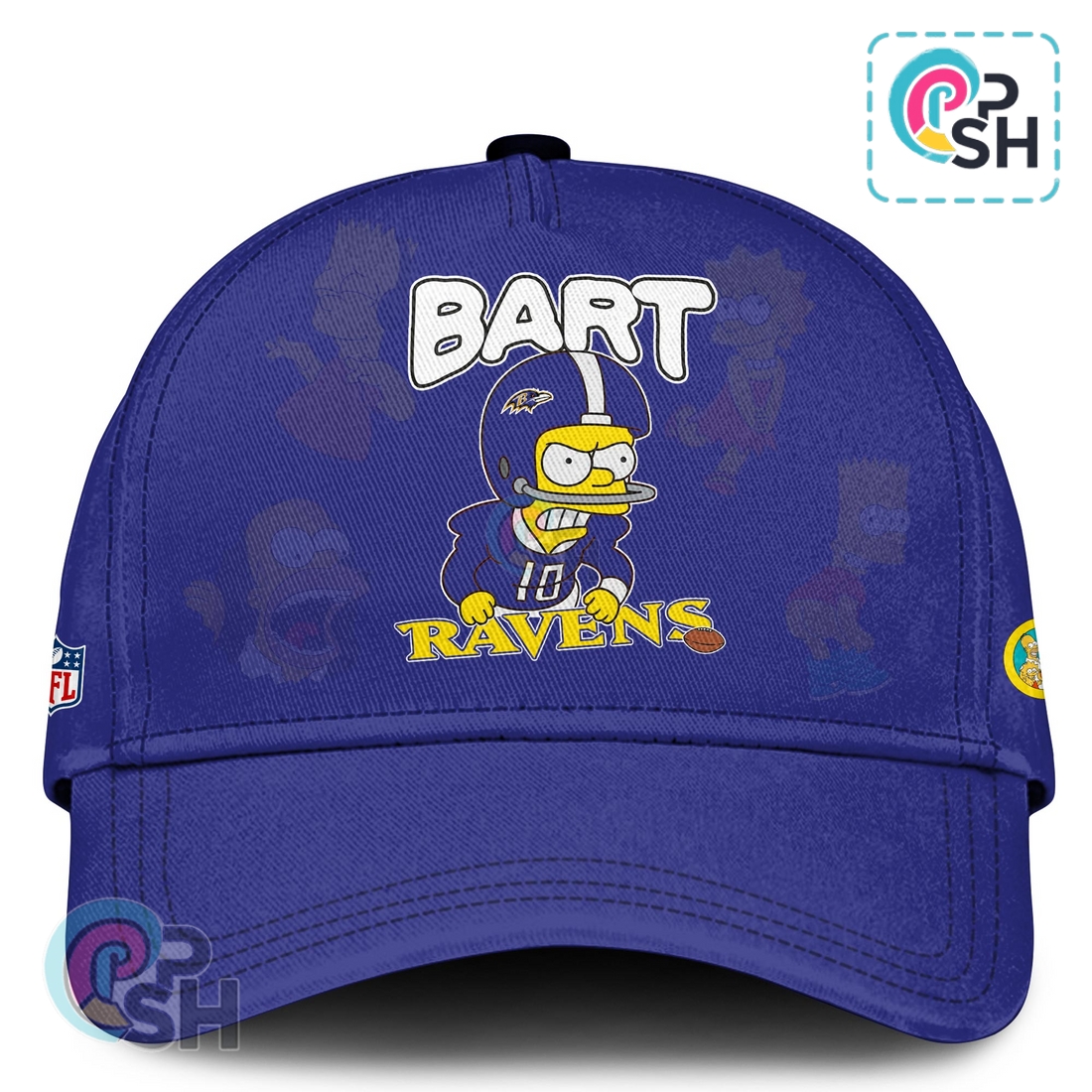 Complementing the hoodie is The Simpson Limited Edition Cap, a stylish and practical accessory designed to complete the ultimate fan ensemble. This cap typically adopts a classic baseball cap silhouette, potentially available in adjustable snapback or fitted styles, crafted from durable cotton twill or a similar hard-wearing fabric that promises longevity and retains its structure. The front panel proudly displays a masterfully executed crossover graphic, perhaps a classic Ravens logo with a subtle Simpsons character peeking out, or a prominent Simpsons character rendered in Ravens colors and apparel, all executed with precise, high-quality embroidery that showcases fine detail and vibrant thread colors. The brim, often pre-curved for immediate wearability, offers essential sun protection, while embroidered eyelets ensure adequate ventilation, keeping the wearer comfortable even on warmer days. Subtle branding, such as a small Simpsons logo on the side or an embroidered Ravens wordmark on the back, adds to its sophisticated appeal without overcrowding the primary design. Like the hoodie, the cap’s “Limited Edition” status elevates it beyond standard headwear, making it a coveted piece for collectors and fashion-forward fans alike.
