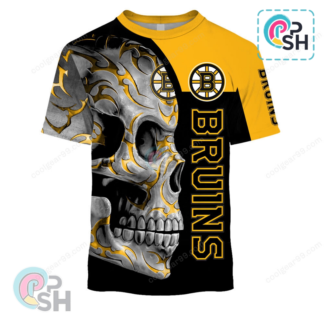 Central to its allure is the meticulously detailed “Skull Fury” graphic, elevating traditional team branding into an iconic statement. Prominently positioned across the chest, this design masterfully integrates a menacing, stylized skull with classic Bruins elements. Envision a grimacing skull, its contours subtly formed by the iconic spoked-B logo, perhaps with hockey sticks crossed behind it or integrated into its jawline, all rendered in stark black, shimmering gold, and crisp white. The artistry ensures the skull conveys an aggressive, indomitable spirit, yet the Bruins identity remains unmistakably dominant, creating a powerful visual narrative of relentless determination and unwavering resilience—traits synonymous with the team and its most passionate supporters. High-definition printing ensures remarkable clarity and color saturation, preventing fading or cracking even after numerous washes, guaranteeing the design’s impact remains potent. This unique graphic caters to fans seeking a contemporary, slightly rebellious expression of their devotion, moving beyond generic logos to embrace intensity.