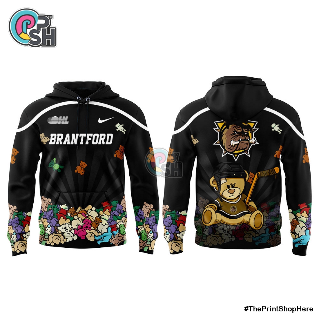 The Brantford Bulldogs Teddy Bear Toss Night Combo Hoodie and Pants set stands as the ultimate fan essential, meticulously designed to capture the spirit and warmth of one of hockey’s most heartwarming traditions. This cohesive two-piece ensemble is more than just apparel; it’s a wearable testament to team loyalty and a comfortable companion for every devoted supporter, whether they are at the rink, lounging at home, or running errands. The hoodie, crafted from a premium blend of 80% cotton and 20% polyester fleece, offers an immediate sensation of plush softness against the skin, while its substantial weight provides exceptional warmth. The exterior boasts a smooth, durable finish, perfect for showcasing the vibrant, high-definition screen-printed Brantford Bulldogs primary logo proudly emblazoned across the chest. This iconic emblem is complemented by a unique, event-specific “Teddy Bear Toss Night” graphic, creatively integrated to feature playfully falling teddy bears alongside hockey sticks or pucks, making it a distinctive commemorative item that will spark conversations and memories.
