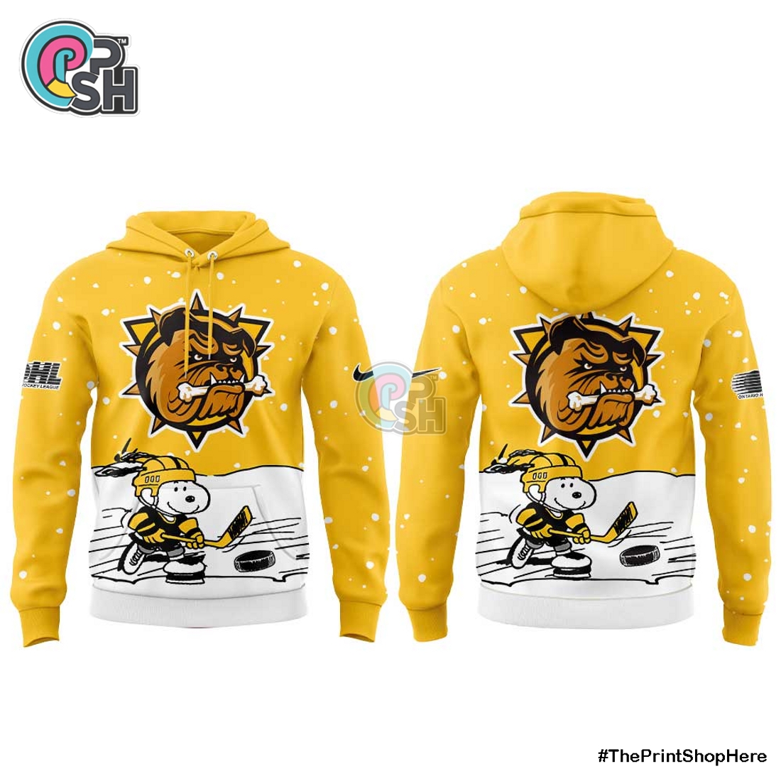 This Brantford Bulldogs x Snoopy and Peanuts Combo Hoodie and Pants set offers a supremely comfortable and uniquely stylish way to showcase dual loyalties, seamlessly blending the spirited world of hockey with the timeless charm of Charles M. Schulz’s iconic characters. It presents a distinctive apparel solution for fans who appreciate both athletic pride and whimsical nostalgia, providing a cohesive look that is both eye-catching and incredibly soft.