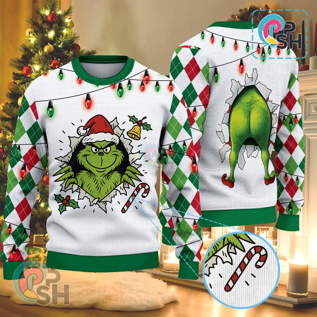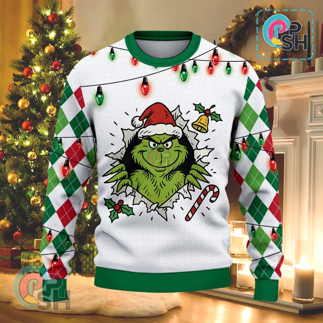 The ideal garment for embracing holiday cheer with a twist, this Grinch-themed knitted sweater offers an unparalleled blend of festive humor, luxurious comfort, and lasting quality, perfect for anyone looking to make a memorable statement this season. Every detail of this meticulously crafted piece celebrates the iconic Dr. Seuss character, inviting wearers and onlookers alike into the whimsical world of Whoville with a mischievous grin. The design prominently features the Grinch himself, captured in various classic poses that evoke his transformation from a curmudgeonly recluse to a heart-full holiday enthusiast. You might find him mid-heist, a twinkle of mischief in his eye as he plots to steal Christmas, or perhaps with his loyal companion Max, burdened by a sleigh full of stolen presents. Surrounding these central figures are intricate knit patterns that weave in traditional Christmas elements like delicate snowflakes, twinkling stars, and festive candy canes, all subtly integrated to complement the Grinch’s vibrant green against a rich backdrop of holiday reds, snowy whites, or deep forest greens, depending on the specific variant. The art style remains faithful to Seuss’s original illustrations, providing a sense of nostalgic authenticity that long-time fans will immediately recognize and adore.
