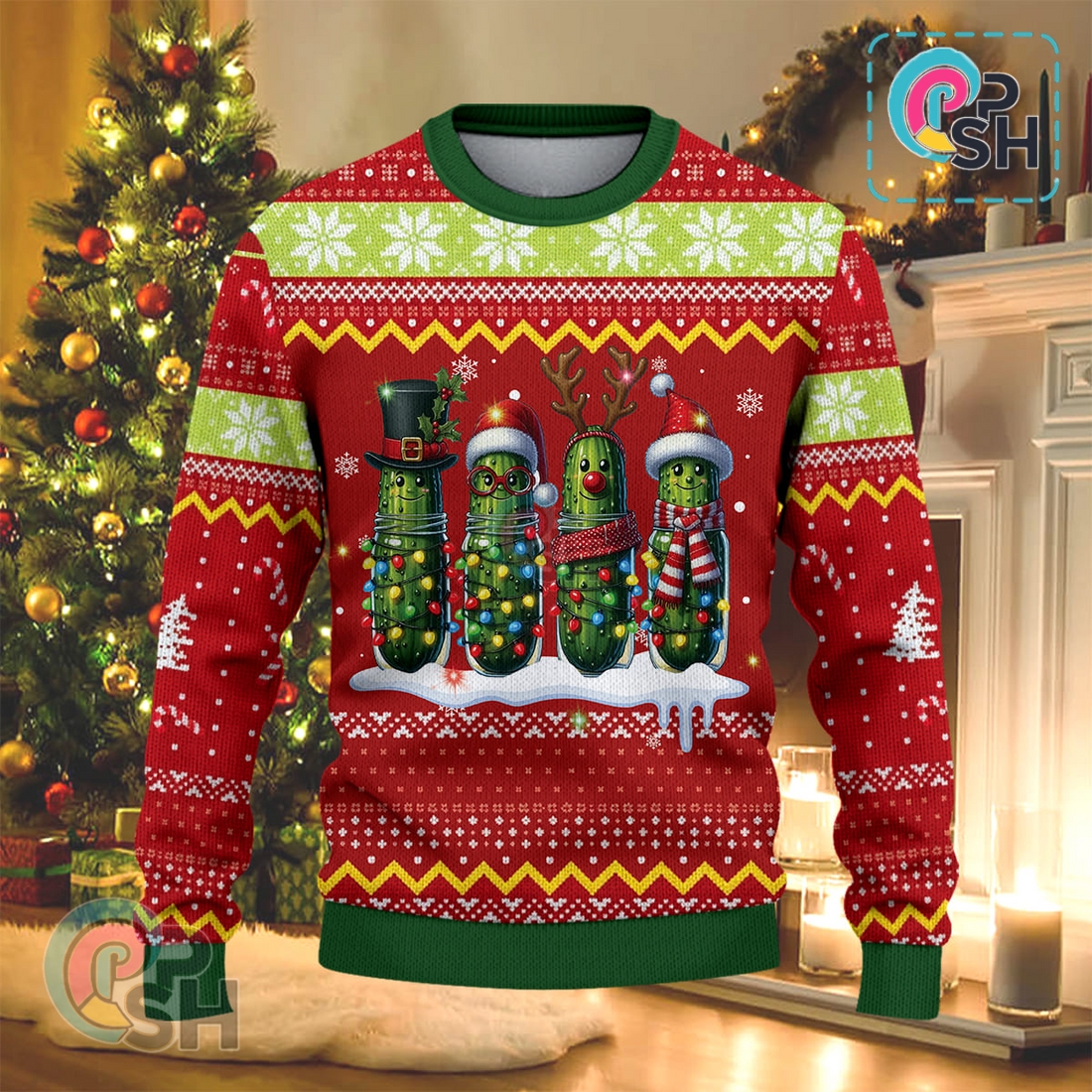 Funny Christmas Pickle Holiday Cucumber Christmas Knitted Sweater