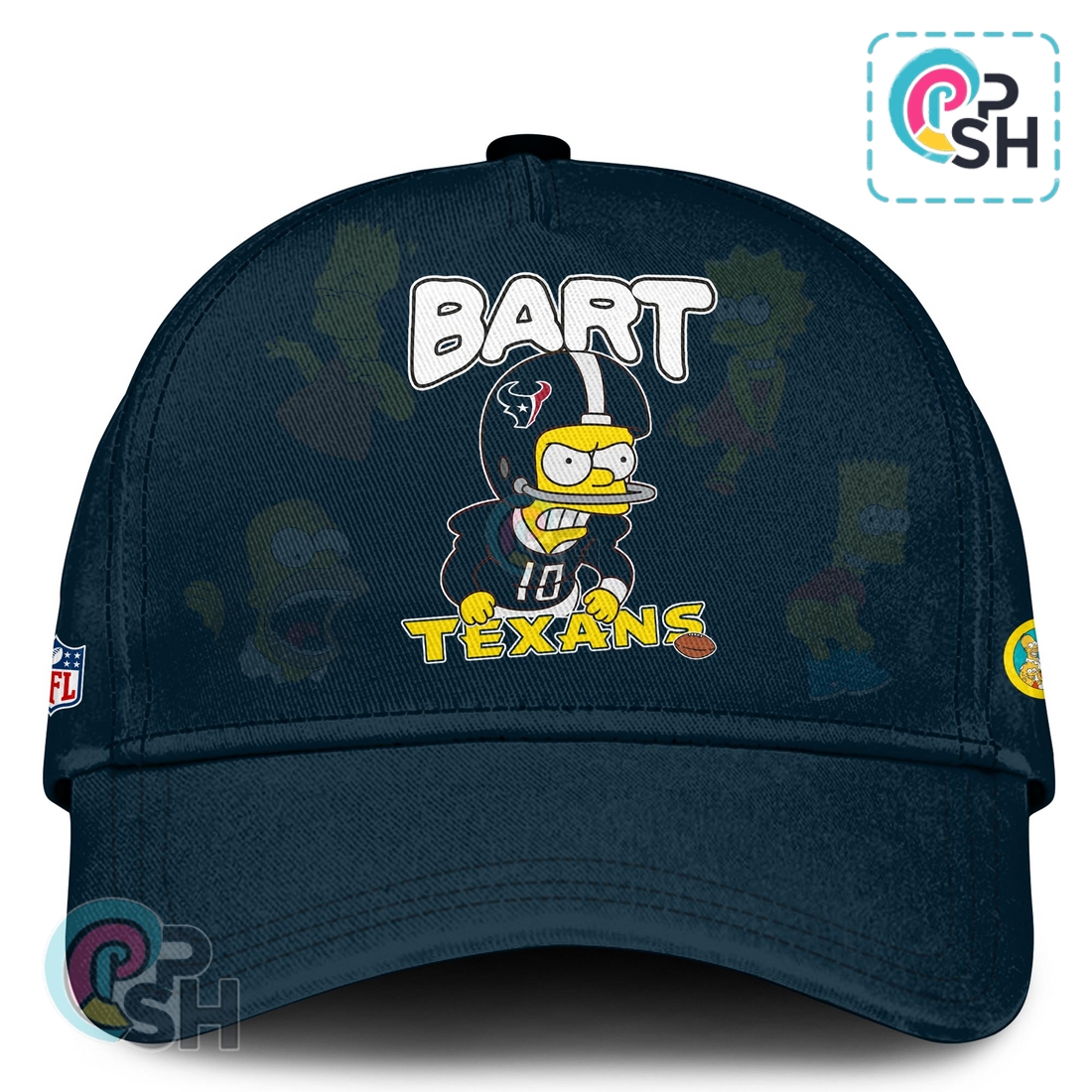 Complementing the hoodie’s vibrant appeal is the coordinating cap, a perfect accessory that ties the entire look together. This cap is typically structured for a classic athletic profile, featuring a durable cotton twill or similar fabric that is both comfortable and hard-wearing. The front panel proudly displays an embroidered fusion of the Houston Texans logo and a prominent Simpsons character or motif, echoing the hoodie’s theme. The embroidery is precise, showcasing sharp lines and rich colors that resist fraying or fading over time. Often, these caps come with an adjustable strap or snapback closure, ensuring a comfortable, custom fit for nearly any head size, complete with ventilation eyelets to keep you cool. Its pre-curved brim offers sun protection and that quintessential, laid-back fan aesthetic. Together, the hoodie and cap create a cohesive, eye-catching outfit that allows fans to express their unwavering support for the Texans while simultaneously showcasing their appreciation for one of television’s most beloved families. This isn’t merely functional clothing; it’s wearable art for the discerning fan.