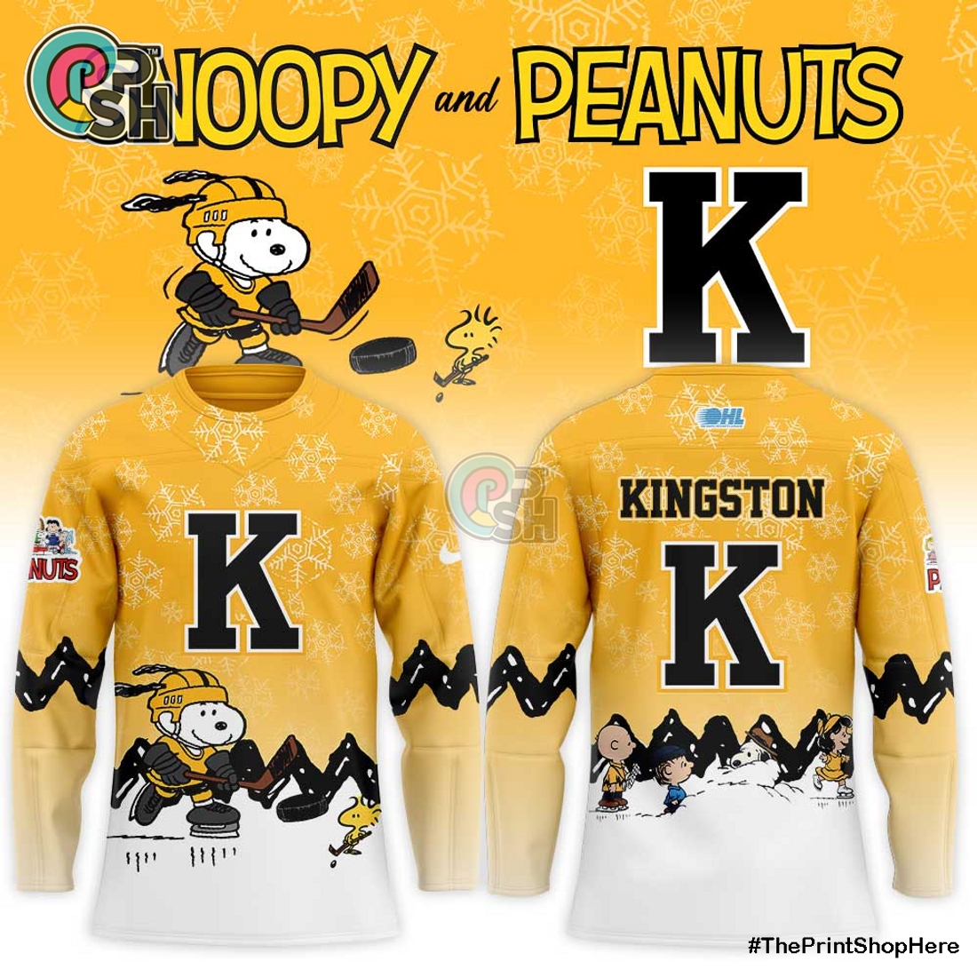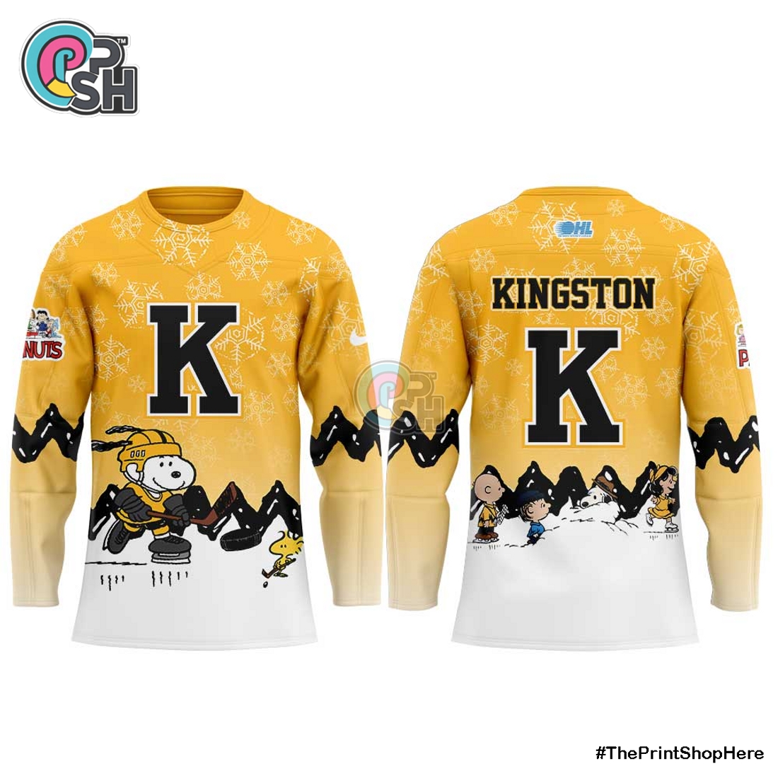 The Kingston Frontenacs Snoopy and Peanuts Hockey Jersey presents an irresistible fusion for enthusiasts of both the Ontario Hockey League’s storied team and Charles M. Schulz’s timeless comic strip artistry. This officially licensed product stands out not merely as fan apparel, but as a meticulously designed collectible piece that seamlessly weaves together the fierce spirit of junior hockey with the heartwarming whimsy of the Peanuts gang. At its core, the jersey is built to the demanding standards expected of quality hockey wear, utilizing a durable yet breathable polyester fabric that mimics the performance and comfort of on-ice athletic jerseys. This choice of material ensures a comfortable fit whether you’re cheering from the stands, engaging in casual play, or simply wearing it as everyday attire, providing ample ventilation to keep you cool without sacrificing its robust feel.
