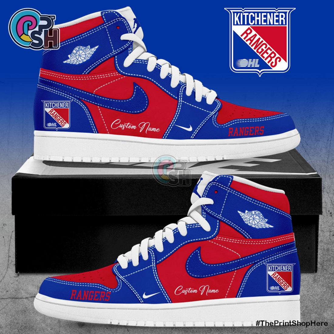 The Kitchener Rangers Custom Name Air Jordan 1 Shoes represent a unique fusion of iconic sneaker culture and fervent hockey fandom, offering an unparalleled way for supporters to display their loyalty with a deeply personal touch. At its foundation, this footwear is built upon the legendary Air Jordan 1 silhouette, a design revered globally for its timeless aesthetic, robust construction, and enduring comfort. Buyers will appreciate the premium materials typically associated with the Air Jordan 1, which often include a combination of high-quality genuine leather and durable synthetic overlays that provide both structural integrity and a luxurious feel. The classic high-top cut delivers excellent ankle support, a hallmark of the original basketball shoe, while the integrated Air-Sole unit in the heel offers responsive cushioning, ensuring comfort for extended wear whether you’re at the arena, walking around town, or just showing off your unique kicks. The solid rubber outsole, featuring the signature pivot circle tread pattern, guarantees reliable traction and long-lasting durability, cementing the shoe’s status as both a fashion statement and a practical piece of footwear.