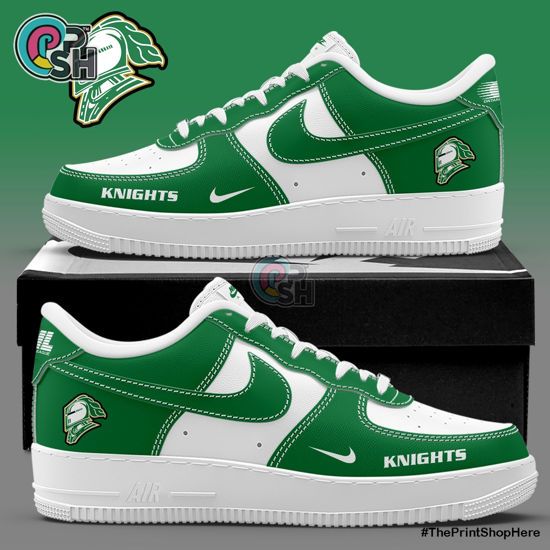 Building upon this reliable base, the customization transforms the shoe into a wearable tribute to the London Knights hockey team. The design incorporates the team’s distinctive color palette – vibrant greens, deep blacks, and crisp whites – strategically applied to various panels of the Air Force 1. The iconic London Knights logo, often featuring a knight’s helmet, is prominently and tastefully integrated, typically appearing on the side panels, heel tab, or tongue, showcasing allegiance with undeniable pride. This isn’t just a generic fan item; it’s a meticulously designed piece that captures the spirit and visual identity of the team. The ultimate distinguishing feature, however, is the custom name application. Buyers have the exclusive opportunity to personalize their pair with their chosen name or text, which is expertly integrated into the shoe’s design, often on the heel, side, or tongue. This bespoke touch elevates the shoes from mere merchandise to a truly unique artifact, reflecting the wearer’s individual connection to the team. The application process ensures the custom text is durable and seamlessly integrated, presenting a professional and finished aesthetic.