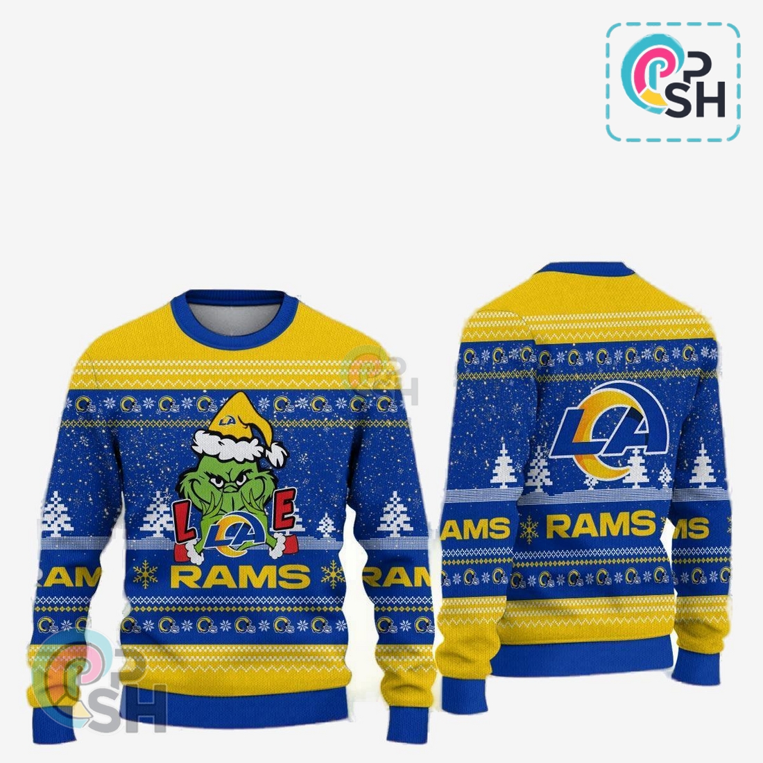 The Los Angeles Rams Limited Ugly Christmas Sweater presents a standout garment for any fan looking to infuse their holiday celebrations with unmistakable team pride and a hearty dose of festive fun. This exclusive apparel piece expertly weaves together the whimsical, often over-the-top aesthetic of traditional “ugly” Christmas sweaters with the iconic imagery and vibrant colors of the Los Angeles Rams. Imagine a design where classic holiday motifs—like intricate snowflakes, cozy reindeer, and twinkling Christmas trees—are playfully interspersed with official Rams logos, the familiar ram’s horn, and the team’s signature deep blue, vibrant gold, and crisp white color palette. The knit pattern itself is a masterclass in controlled chaos, intentionally featuring bold, busy arrangements that are guaranteed to spark conversations and spread cheer at any gathering. Far from a mere novelty, this sweater is constructed with a high-quality, soft acrylic knit, ensuring a comfortable and non-itchy experience even during extended wear. It provides substantial warmth, making it an ideal choice for chilly December evenings, outdoor holiday markets, or simply lounging at home on a game day.