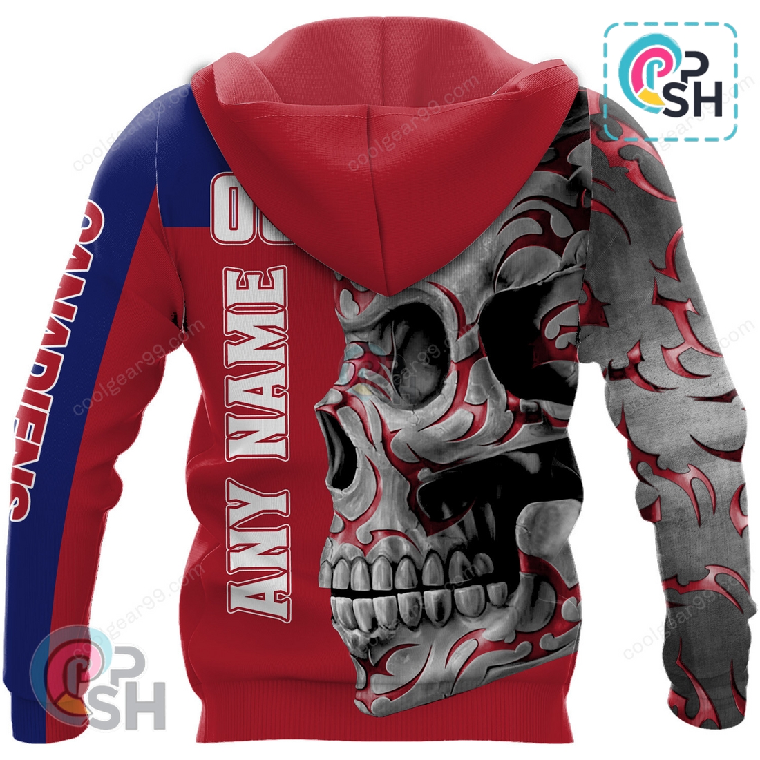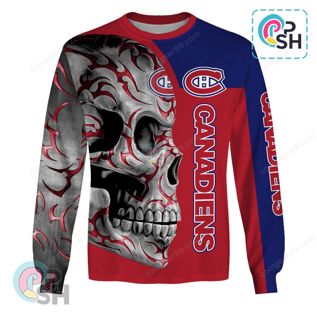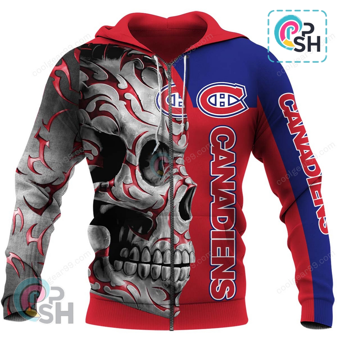 This Montreal Canadiens Skull Fury Hoodie stands as a powerful testament to unwavering team loyalty, offering far more than just a typical piece of fan apparel; it’s a wearable declaration of passion and defiance. Its most striking feature is undeniably the intricately designed “Skull Fury” graphic emblazoned across the chest, a modern and edgy interpretation of team spirit. This isn’t just a generic skull; it’s a highly stylized, almost menacing figure whose determined gaze and sharp lines embody the fierce, unyielding fight of the Canadiens on the ice. Expertly integrated within this formidable design, or presented in compelling complement, is the iconic “CH” logo, unmistakably rendered in the team’s legendary red, white, and blue color scheme. The primary color of the hoodie itself (whether a deep navy, a bold red, or a stark white) serves as the perfect canvas, allowing the graphic to pop with vibrant intensity, ensuring your allegiance is visible from across the arena or down the street. This design specifically caters to the fan who feels the raw emotion of every game, who lives and breathes Canadiens hockey, and desires to express that profound connection in a unique, bold, and contemporary way that stands out from more conventional merchandise.