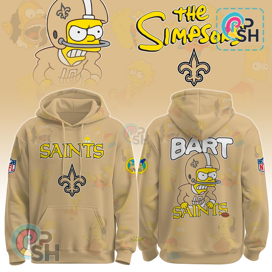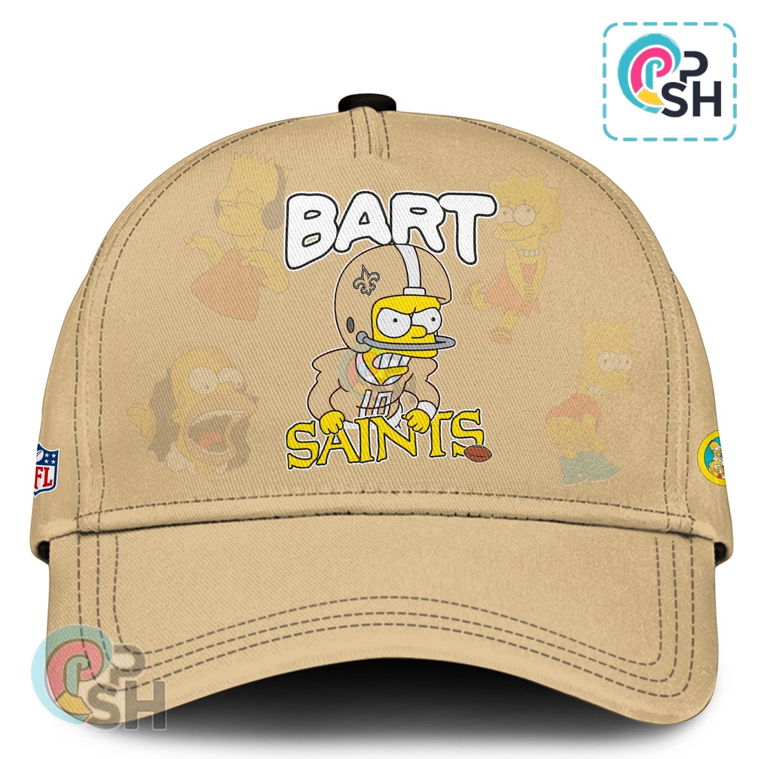 Complementing this standout hoodie is the equally impressive limited edition cap, designed to complete the fan’s look with understated sophistication. Constructed from durable, breathable cotton twill, this cap features a structured six-panel design that maintains its shape, offering a classic profile. The front panel proudly showcases an exquisitely embroidered hybrid logo, perhaps a subtle integration of a Saints’ and Simpsons’ element – imagine the Saints’ fleur-de-lis subtly morphing into a silhouette of Bart Simpson’s head, or Homer’s famous donut ringed by the team colors. The embroidery is precise and richly detailed, signaling premium craftsmanship that stands out from typical printed designs. An adjustable strap at the back, typically a robust snapback or metal buckle closure, ensures a customizable and comfortable fit for nearly all head sizes, while embroidered eyelets provide crucial ventilation, keeping the wearer cool during intense game moments or sunny outings. Both the hoodie and cap bear discreet, yet prominent, limited-edition badging – a numbered tag on the hoodie’s interior, perhaps, and a unique stitched emblem on the cap’s side – affirming their exclusivity and enhancing their appeal as collector’s items. This dual-branded merchandise set directly addresses the needs of several distinct customer profiles. For the dedicated New Orleans Saints fanatic, it offers a novel and witty way to express unwavering team pride, moving beyond standard jerseys or t-shirts. For the avid collector of limited-edition pop culture memorabilia, it represents a rare opportunity to own a piece that bridges sports and animation, likely to appreciate in sentimental and potentially monetary value over time due to its unique pairing and scarcity. It serves as an exceptional gift for birthdays, holidays, or special achievements, offering something genuinely unique that aligns with deep-seated passions. Moreover, for anyone seeking comfortable, high-quality casual wear that makes a personal statement, this set provides both unparalleled comfort and a distinctive style that will undoubtedly turn heads and spark smiles, embodying a playful spirit while maintaining authentic fan devotion. This is more than apparel; it’s an identity for those who walk the line between fandom and animated fun.