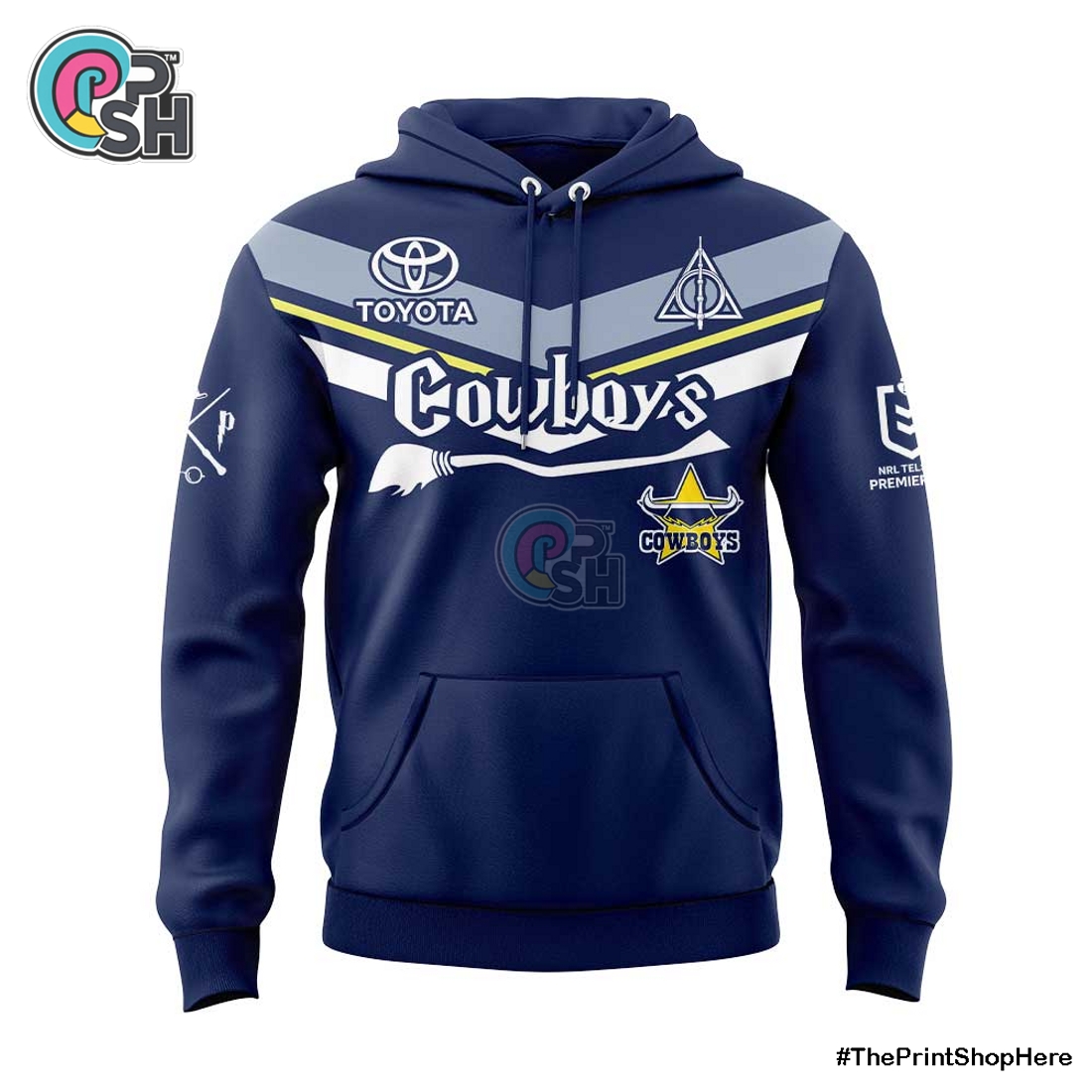 The hoodie, a central component of this collection, features a substantial, yet remarkably soft, cotton-poly blend fabric, providing exceptional warmth without excessive bulk. Its interior is lined with a plush, brushed fleece that feels luxurious against the skin, making it perfect for chilly match days, cozy evenings at home, or casual outings. The design masterfully integrates the NQ Cowboys’ signature colors and bull logo with elements from the wizarding world. Imagine a custom-designed crest, prominently displayed across the chest, where the Cowboys’ fierce bull might be intertwined with a golden snitch or a stylized wand, all framed within the unmistakable shield shape of a Hogwarts house emblem. Subtle accents, like drawstrings tipped with house colors or the “2025” mark subtly woven into the sleeve cuff, signify its limited-edition status. A generously sized kangaroo pocket offers practicality and warmth for hands, while the ribbed cuffs and hem ensure a snug, comfortable fit that retains its shape wear after wear. The hood itself is designed for full coverage and warmth, adjustable with durable, branded drawstrings that carry either team or wizarding world insignias.