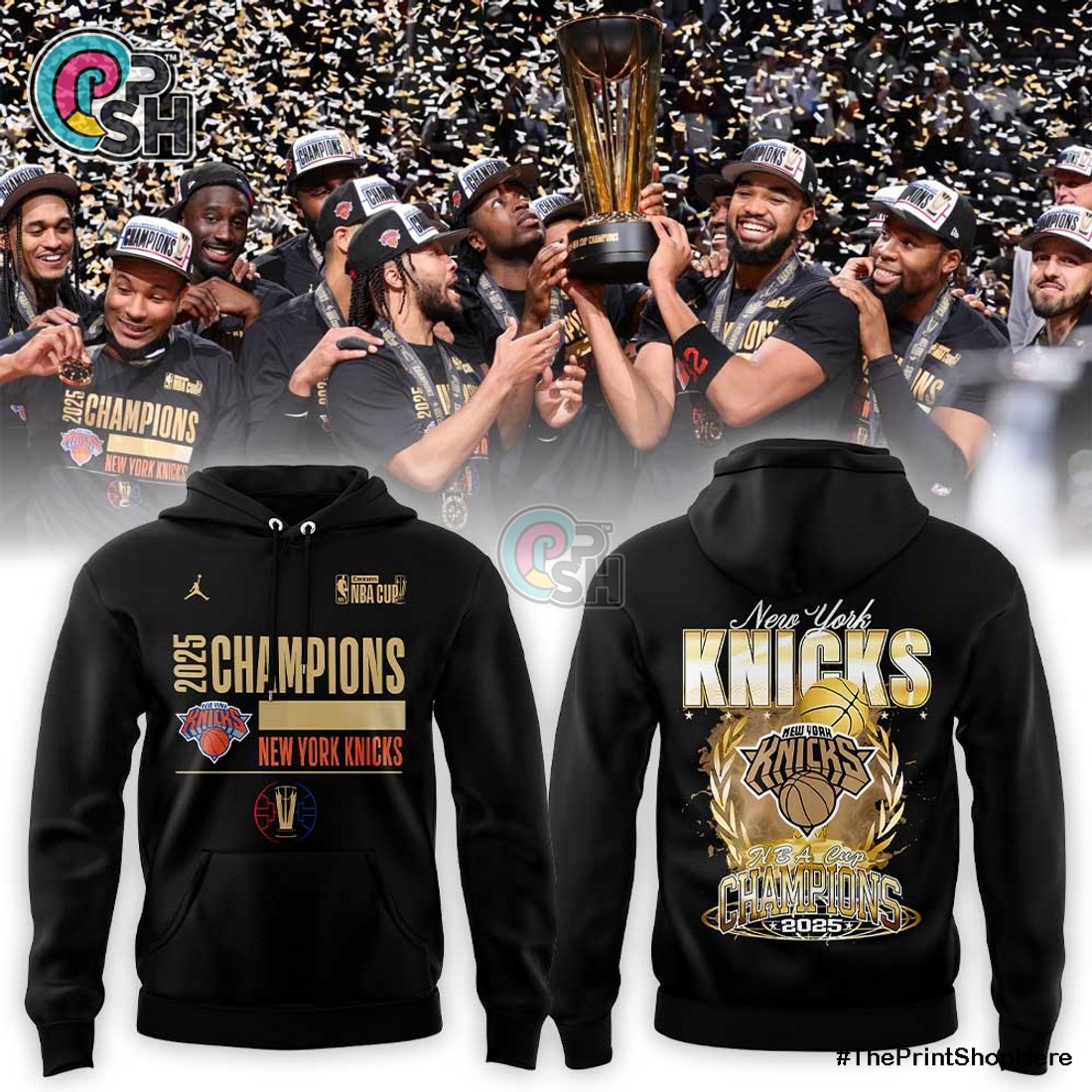NY Knicks Emirates 2025 Champions Black Hoodie
