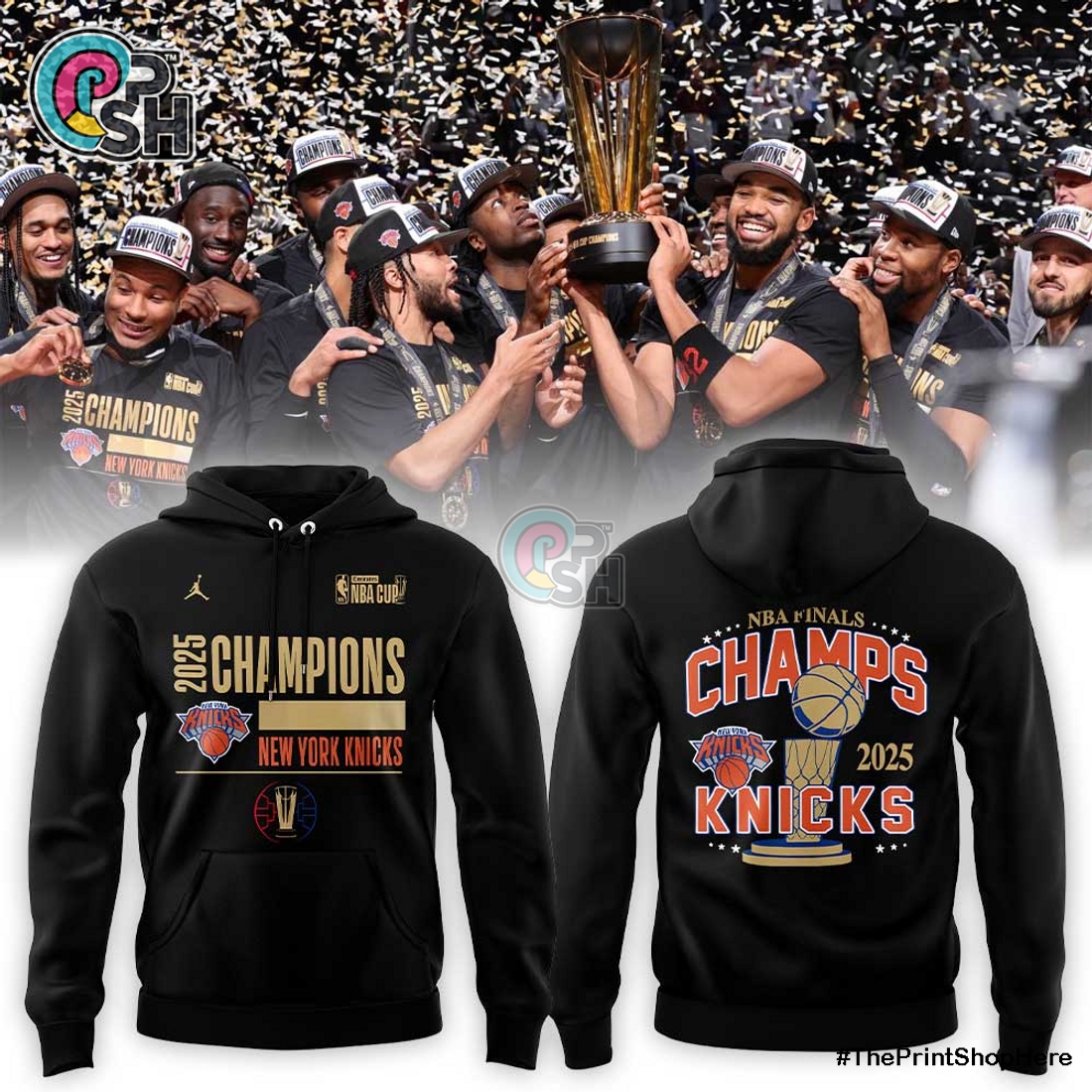 NY Knicks Emirates NBA Cup Champions Black Hoodie, Cap