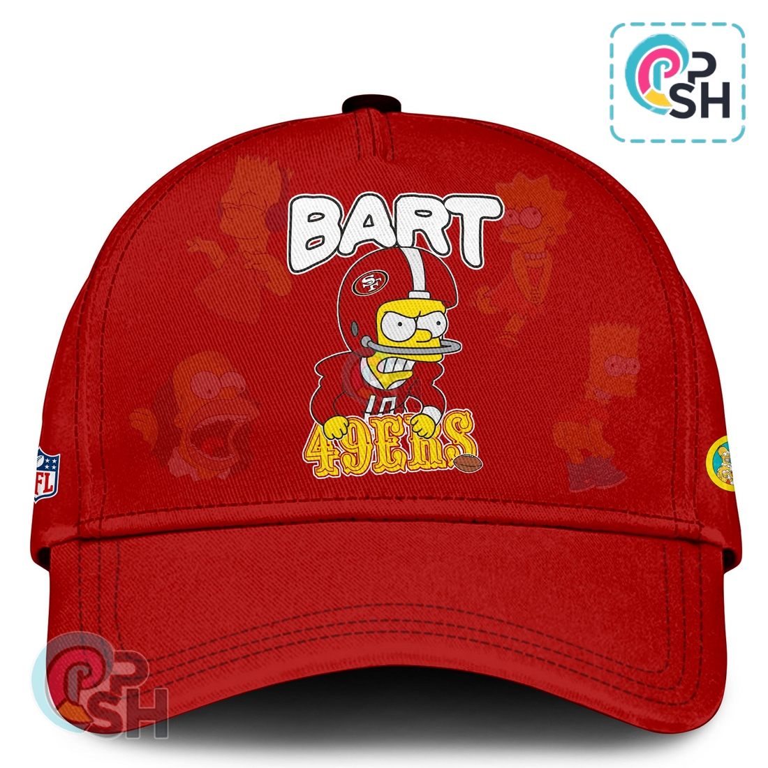 Complementing the hoodie is the matching cap, designed to complete the ensemble or stand alone as a statement piece. Crafted from durable cotton twill, it offers a classic feel with a robust structure that holds its shape. The front panel proudly displays the San Francisco 49ers emblem, possibly with one or more Simpsons characters subtly incorporated – perhaps Bart peeking from behind the “SF” logo, or a small Homer alongside, adding a playful yet sophisticated touch. The embroidery is precise, showcasing sharp lines and rich colors that withstand daily wear. It features an adjustable strap at the back, likely a snapback or a buckle closure, ensuring a comfortable and customizable fit for almost any head size. The brim comes pre-curved, offering immediate wearability and sun protection, while maintaining a stylish profile. Just like the hoodie, the cap will bear discreet limited edition markings, reinforcing its special status.