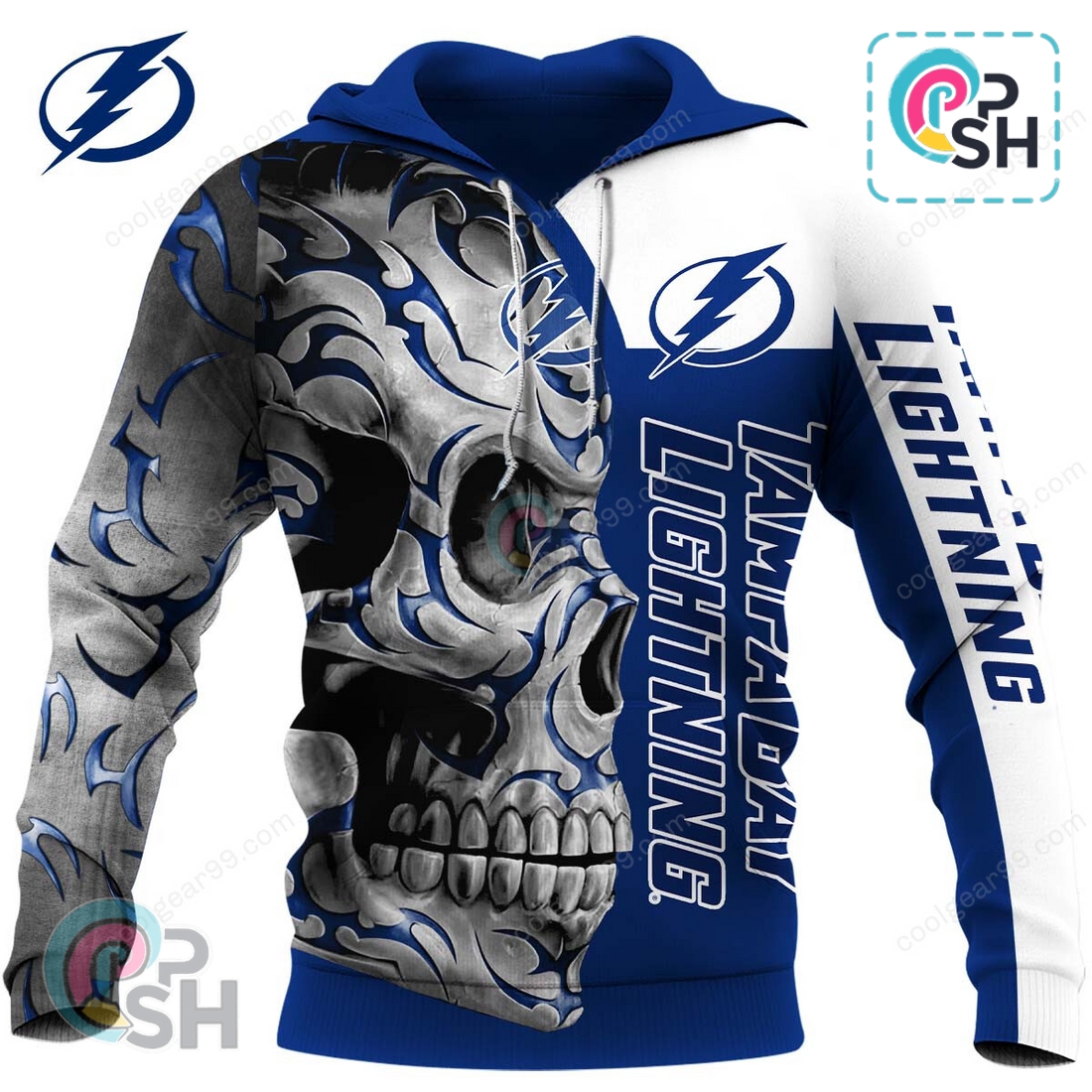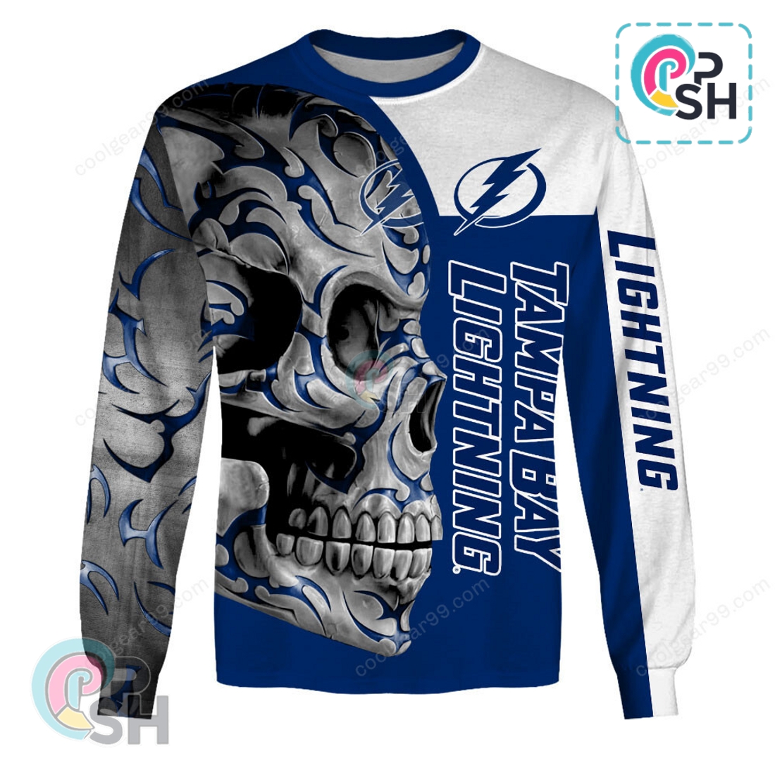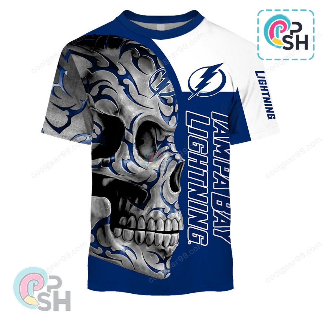 This Tampa Bay Lightning Skull Fury Hoodie presents an exceptional opportunity for dedicated fans to showcase their unwavering loyalty and passion for the Bolts in a truly distinctive fashion. Far more than just another piece of fan merchandise, this hoodie is engineered to be a statement, blending high-quality construction with an aggressive, eye-catching design that immediately sets it apart. The central feature, the “Skull Fury” graphic, commands attention with its intricate detailing and powerful imagery. A stylized skull, rendered with sharp lines and menacing contours, seamlessly integrates elements of the Tampa Bay Lightning aesthetic. This isn’t merely a generic skull; often, the Lightning bolt emblem or the team’s iconic colors are artfully woven into its structure, perhaps illuminating an eye socket or forming part of its grimace, ensuring that the team identity remains paramount within the fierce design. The vibrant electric blue of the Lightning is typically contrasted against deep blacks and cool whites or silvers, creating a dynamic visual effect that pops, whether you’re at Amalie Arena, watching from home, or simply out and about.