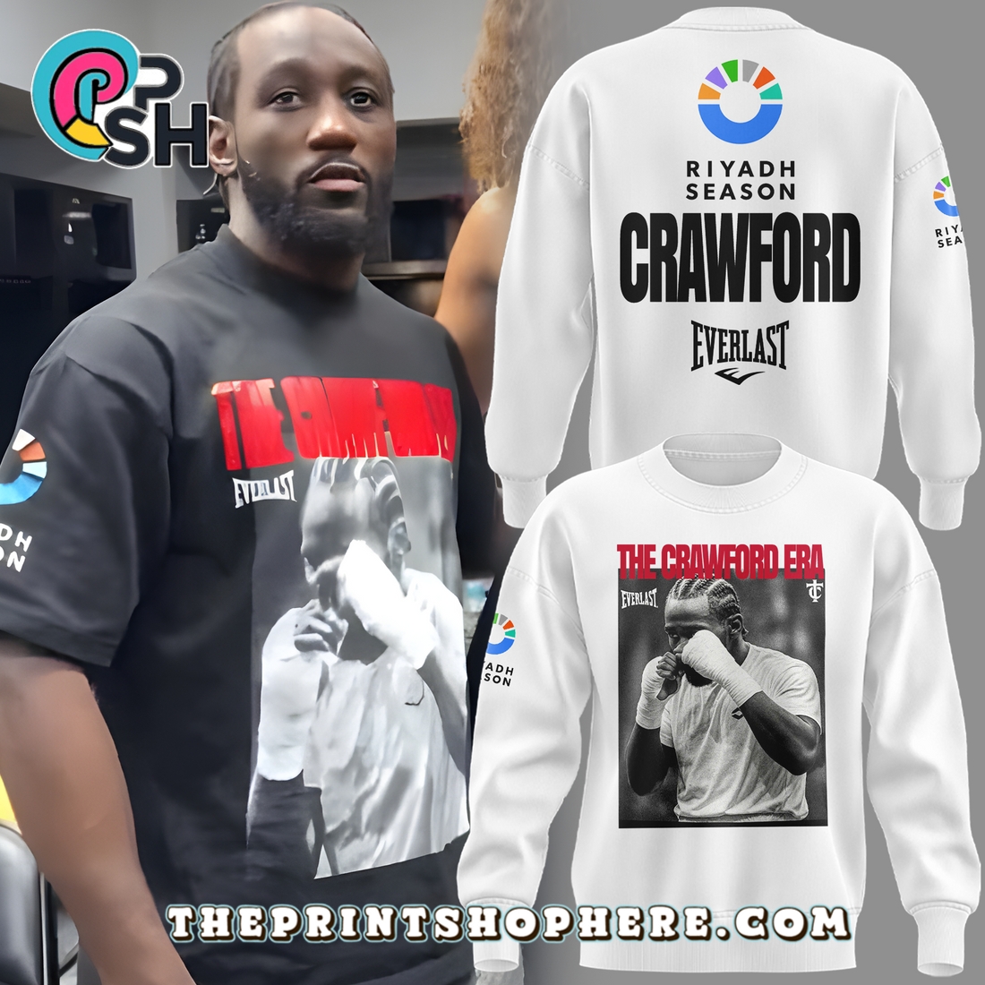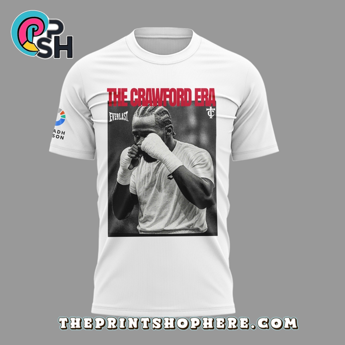 Every design element of this limited-edition piece has been thoughtfully considered to honor Crawford’s iconic status while maintaining a sleek, modern aesthetic. The front might feature a subtle, tonal embroidery of Crawford’s signature “Bud” nickname or his stylized logo, rendered in a slightly contrasting white or a very light silver thread to add a touch of understated sophistication without being overtly flashy. Turning to the back, potential buyers will discover a more prominent, yet artfully designed graphic, possibly a minimalist silhouette of Crawford in a triumphant stance, accompanied by “ERA 2025” or a clean, modern typography spelling out “Crawford” that signifies this specific, forward-looking period of his career. The year “2025” is strategically integrated, perhaps on a sleeve cuff or near the hem, acting as a discreet timestamp that elevates its collector’s appeal. The fit is a masterclass in versatility, typically an athletic-relaxed cut that provides ample room for movement without appearing baggy, suitable for a diverse range of body types and preferences, whether worn to the gym, a casual outing, or simply lounging at home.